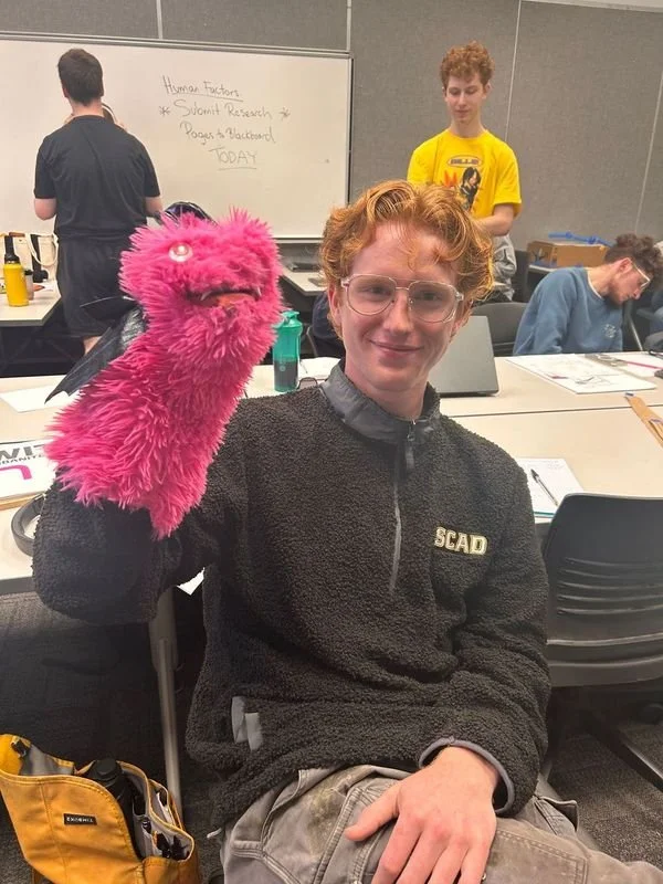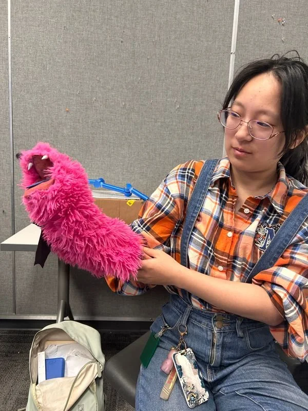 Candy Cullen is an ergonomic hand puppet! She has a thick divider inside the mouth to prevent a pinch grip and strain on the hand with long-term use.